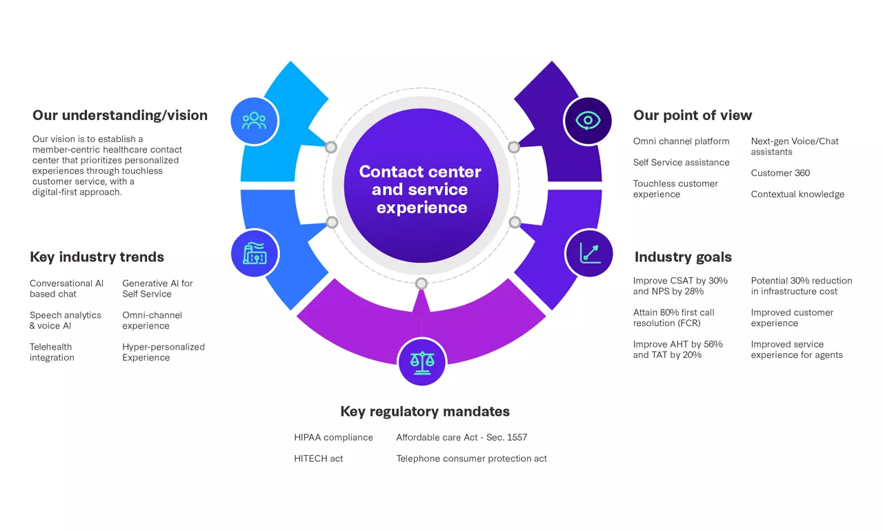 Some of the most prominent recent industry trends include leveraging AI-powered conversational chatbots to efficiently handle patient queries, telehealth integration to enable remote consultations and triage patients, speech analytics and voice AI to provide customized responses, generative AI for self-service features, and omnichannel experiences to retain customers and boost satisfaction.